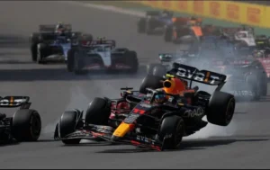 En un impacto con el piloto de Ferrari, Charles Leclerc, el tapatío salió de la pista y terminó eliminado 29...