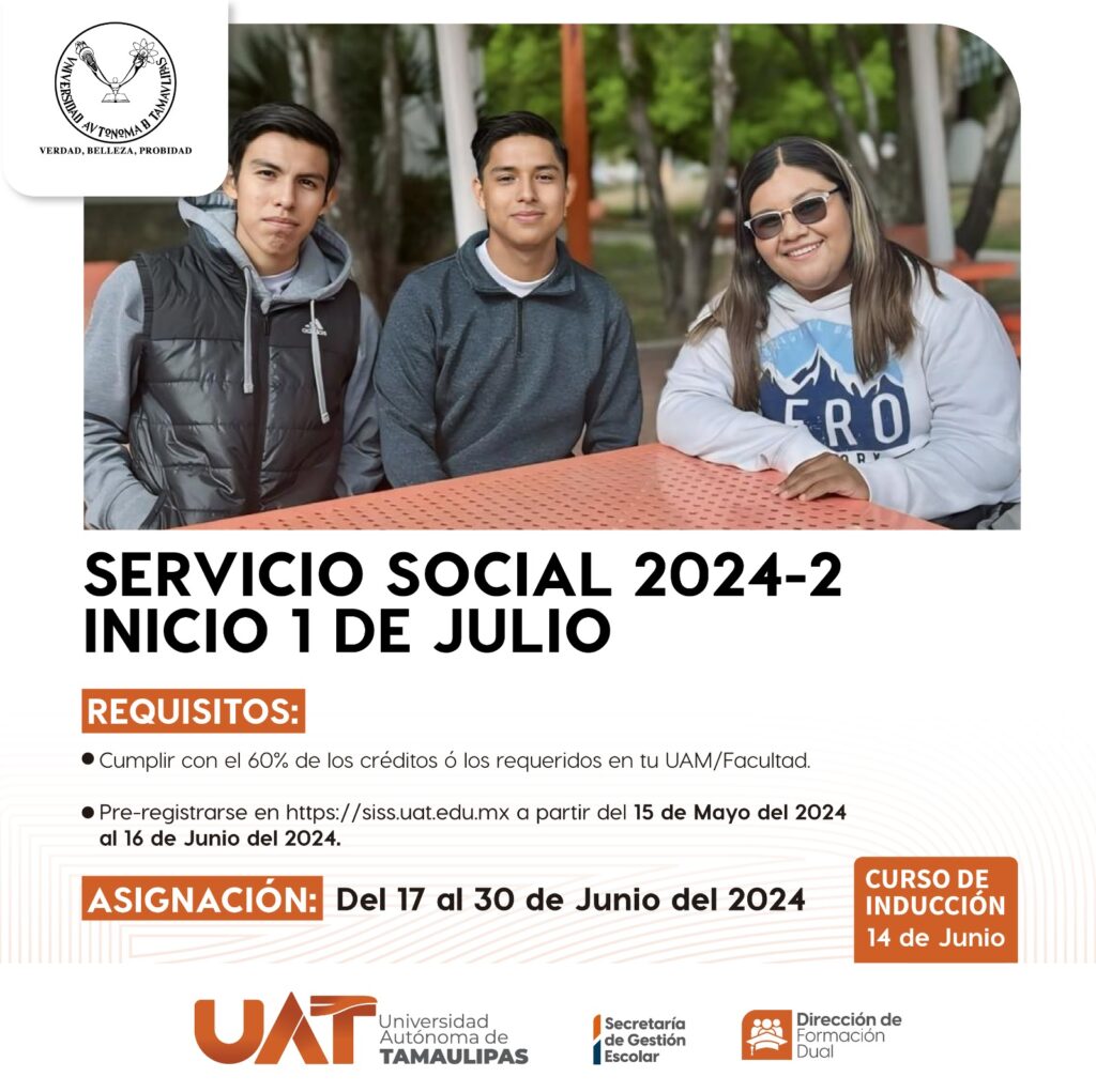 Si cumples con el 60% de los créditos ó los requeridos en tu UAM/Facultad, debes realizar el pre-registro en la página https://siss.uat.edu.mx a partir del 15 de mayo del 2024