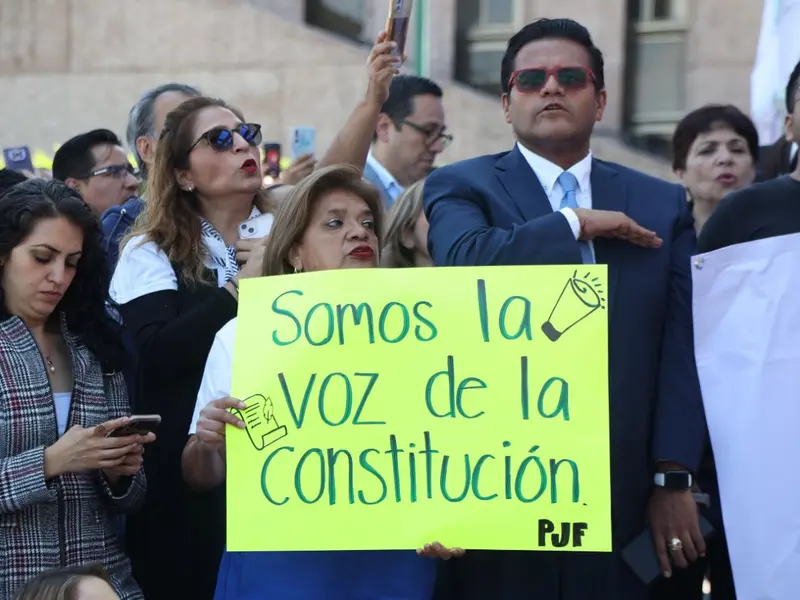 En un acto público, parecido a un mitin de protesta con pancartas afuera del Palacio de Justicia Federal en San Lázaro, jueces, magistrados federales y empleados del Poder Judicial expresaron su rechazo a la elección por voto popular de todos los juzgadores del país.