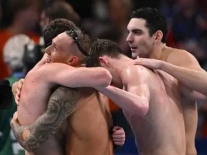 Estados Unidos sostuvo su mote de favorito en París al quedarse con la medalla de oro en natación relevos 4...