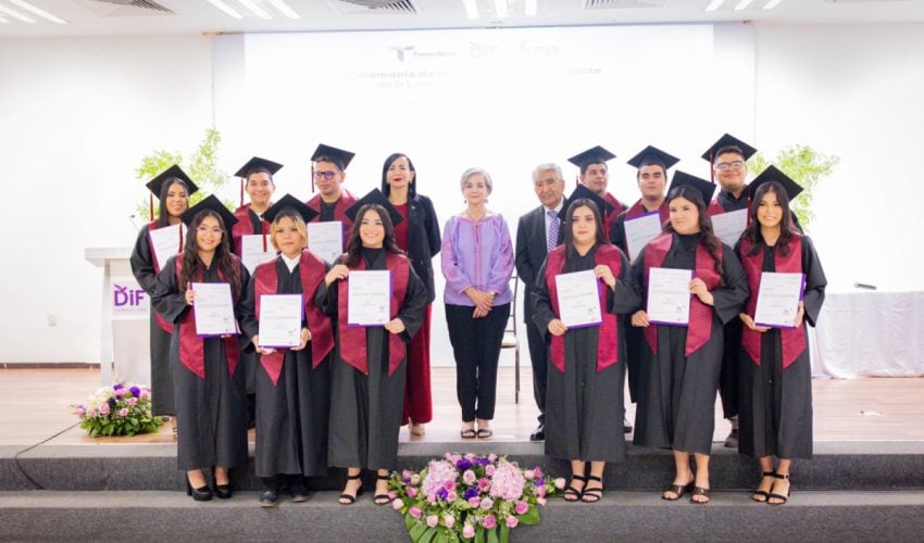 Ciudad Victoria, Tamaulipas. Teniendo como marco el auditorio principal del DIF Tamaulipas, la presidenta de este organismo de asistencia social, la doctora María de Villarreal, hizo entrega de cartas de pasante a quienes forman parte de la generación número XXI de la Licenciatura en Terapia Física, la cual se imparte en las instalaciones del CREE de la capital del estado.