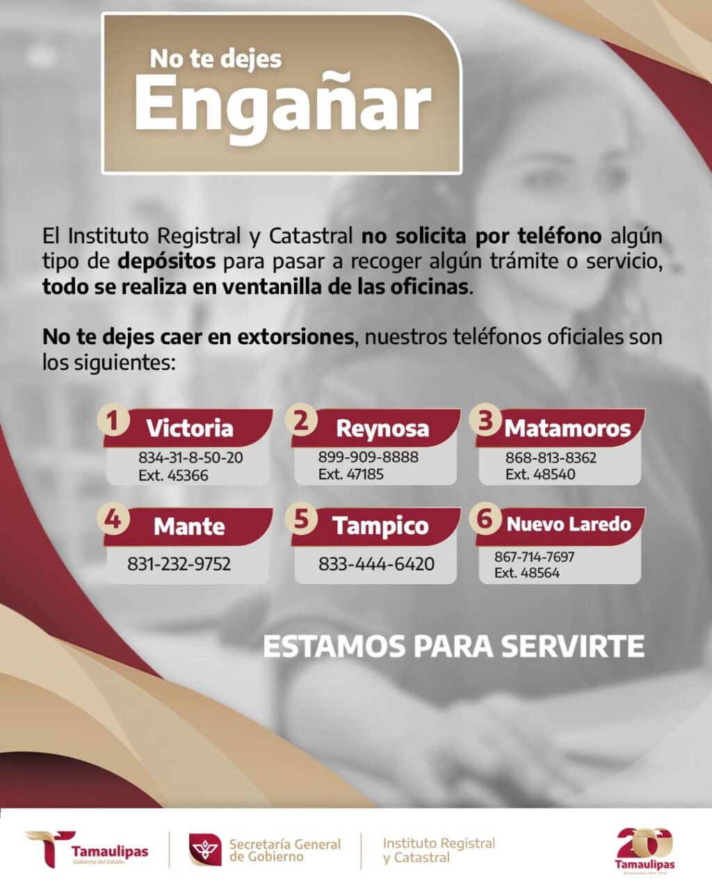 El Instituto Registral y Catastral del Estado de Tamaulipas ha detectado un incremento significativo en llamadas telefónicas fraudulentas dirigidas a la ciudadanía. Estas llamadas, realizadas por personas que se hacen pasar por funcionarios de esta institución, buscan extorsionar a los ciudadanos solicitando pagos a cambio de trámites o servicios.