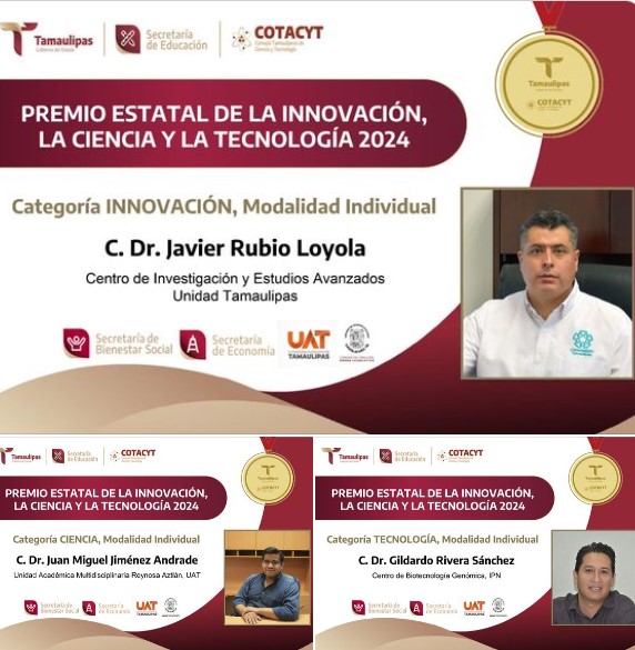 En la categoría de Innovación el ganador es el Dr. Javier Rubio Loyola, del Centro de Investigación y Estudios Avanzados Unidad Tamaulipas, del Instituto Politécnico Nacional; en la categoría de Ciencia, el ganador es el Dr. Juan Miguel Jiménez Andrade, de la Unidad Académica Multidisciplinaria Reynosa Aztlán, de la Universidad Autónoma de Tamaulipas y en la categoría de Tecnología, el ganador es el Dr. Gildardo Rivera Sánchez, del Centro De Biotecnología Genómica, del Instituto Politécnico Nacional.