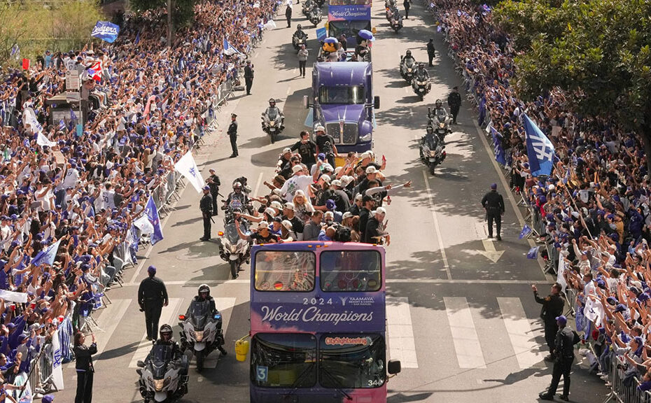 Los Dodgers circularon por diferentes avenidas a bordo de varios autobuses, donde sus familiares acompañaron a los héroes de Los Ángeles.