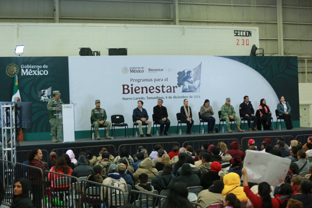 En el evento, Ariadna Montiel Reyes, secretaria de Bienestar, mencionó que en Tamaulipas casi 700,000 personas —niñas, niños, personas con discapacidad, jóvenes estudiantes, adultos mayores y campesinos— reciben Programas de Bienestar.