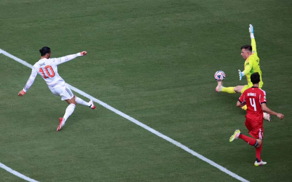 Ante la insistencia del equipo germano, el portero ucraniano Anatoli Trubin se erigió como el gran protagonista de la segunda mitad, negándole el tanto a Leroy Sané en un mano a mano y a Aleksandar Pavlovic en una acción a falta de un cuarto de hora para el final. Sané volvió a intentarlo a solo tres minutos del descuento, pero el guardameta le ganó de nuevo la partida.