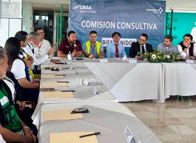 El encuentro se dio con la presencia de Eder Alberto Jimenez León, presidente de la Comisión Consultiva y Administrador del Aeropuerto de Tampico; Benjamín Hernández Rodríguez, secretario de Turismo en Tamaulipas, así como representantes de Sedena, Guardia Nacional, Aduanas, directivos de aerolíneas, y autoridades locales, entre otras más.