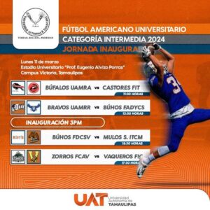 Con la Jornada 2 del Futbol Americano UAT Categoría Intermedia 2024, continuaexitosamente el torneo que reúne a equipos de las...